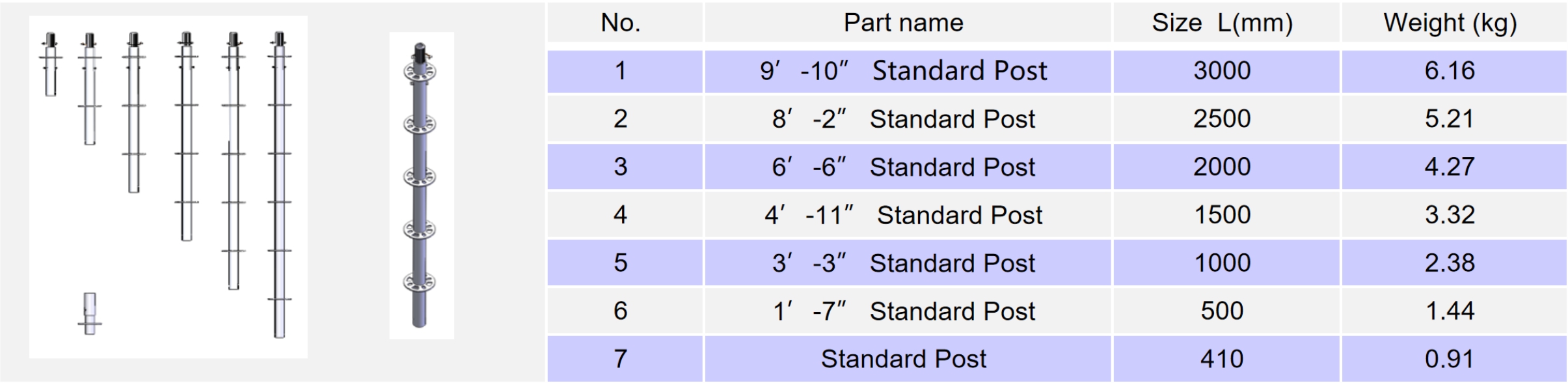 ① 管體材質采用6061-T6; ② 兩端鉚接鑄件扣接頭,與立桿連接盤采插銷連接的水平桿。