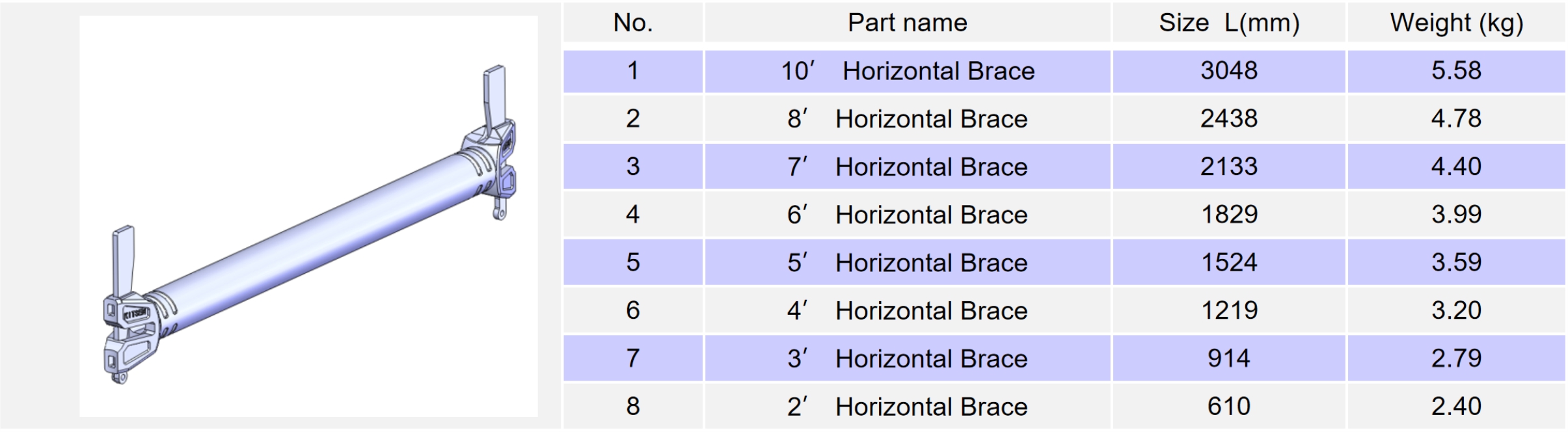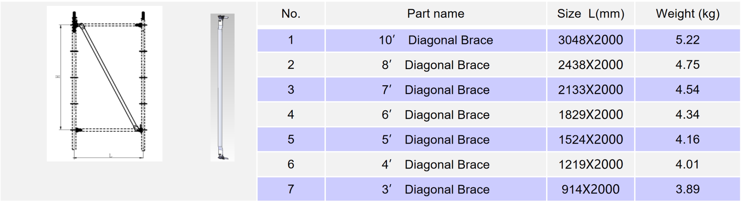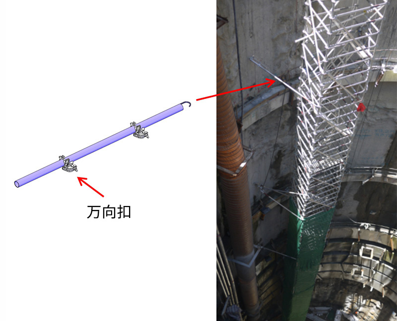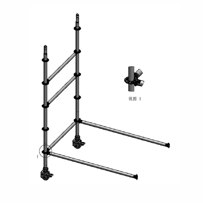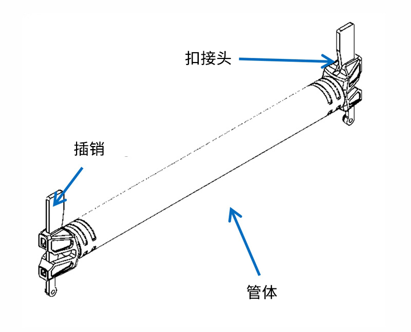 ① 管體材質采用6061-T6。 ② 兩端裝配有轉動扣接頭,與立桿連接盤采用插銷連接的斜向桿件。 |