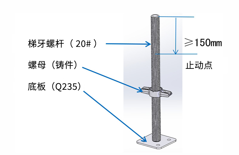 插入立桿底端可調節高度的底座。主要用于調節架體在不平整的環境進行調節。 |