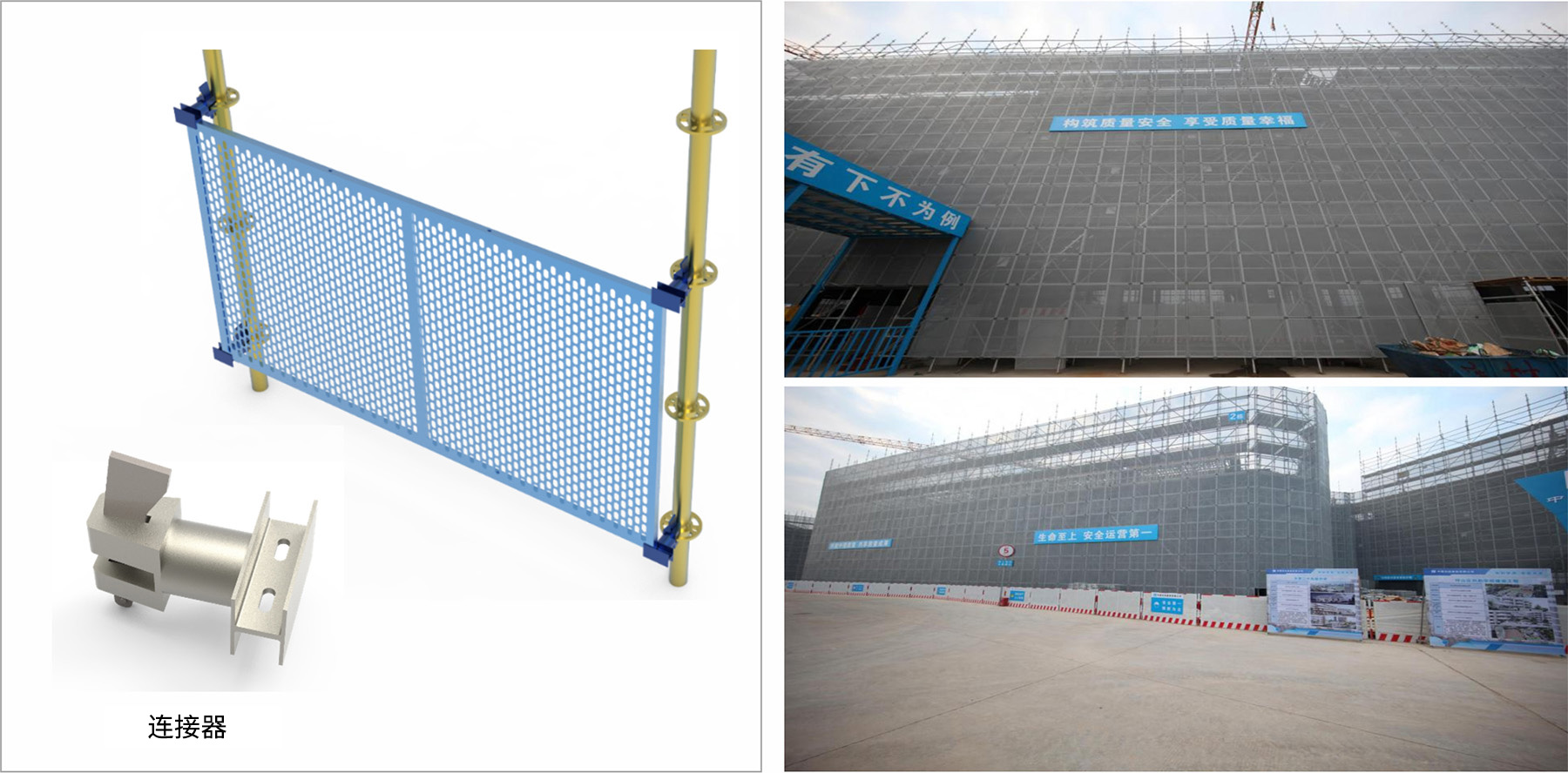 通過與立桿、水平桿的連接件安裝在腳手架外圍的防護裝置。