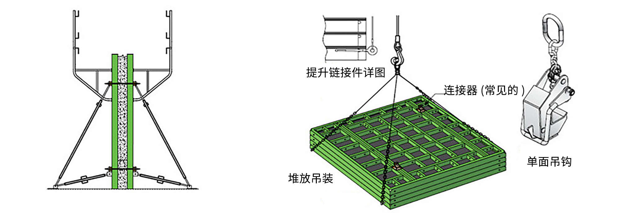 快速有效加工: 易加工零件數量少,加工速度快。 多功能和靈活: 可自由選擇的面板組合適應復雜的幾何形狀,如墻連接,t型連接和角落。 系統化和標準化: 實用的鋼夾可以容納所有面板連接。 超長的使用壽命和循環使用: 高品質的膠合板結合堅固的鋼框架Q345B鋼,熱鍍鋅或粉末涂層,延長了系統的使用壽命,使該系統非常經濟。 廣泛應用行:: 適用于墻和柱。 關鍵因素: 內置式雙層鋼壁矩陣式結構,外墻最大板的最大承重:57KN/m2。 |