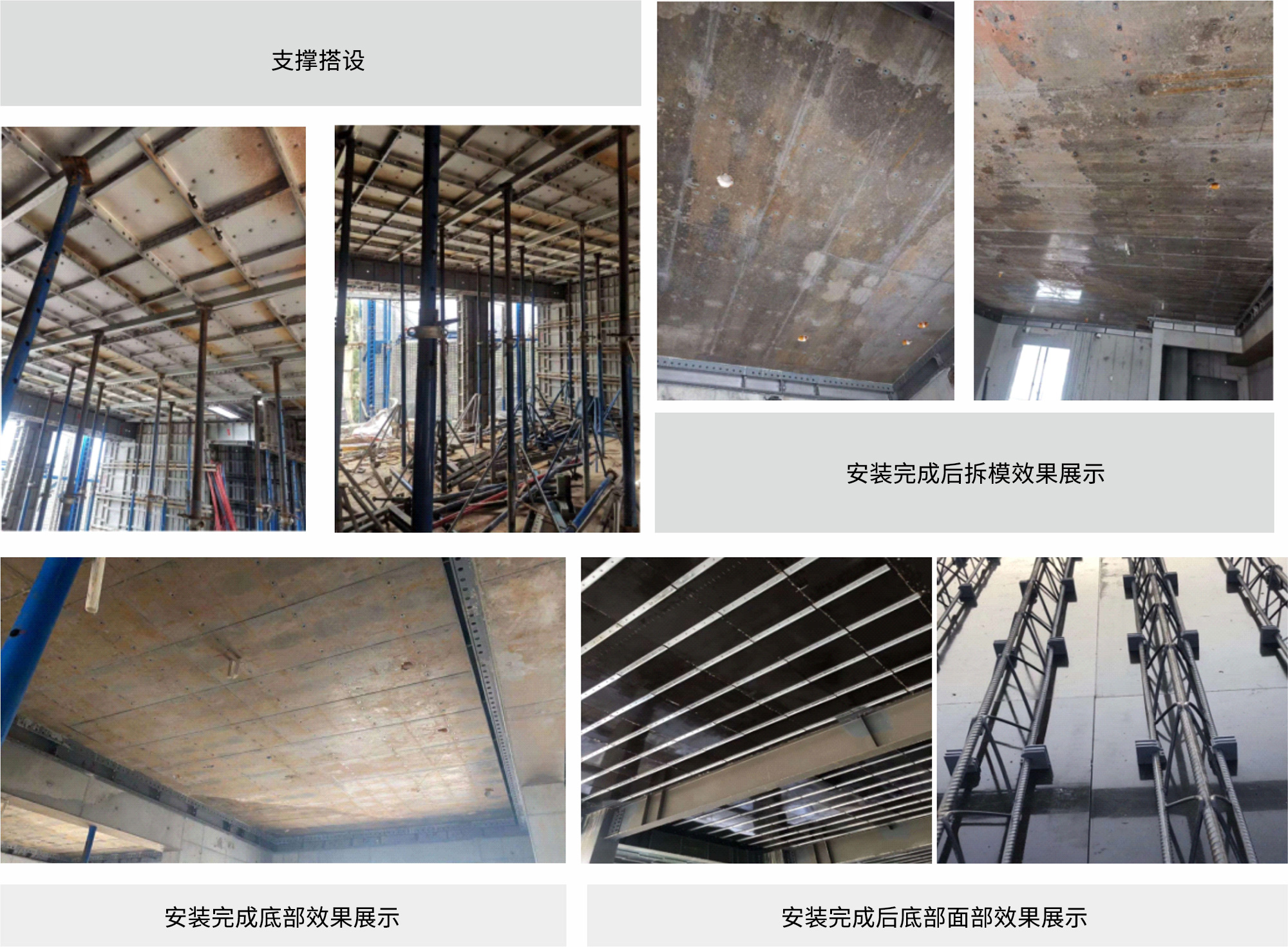 無支撐施工跨度大,現場澆筑時超出板型最大無支??缍葧r僅需在板跨中加設一道臨時支撐極大降低了現場支撐成本 |