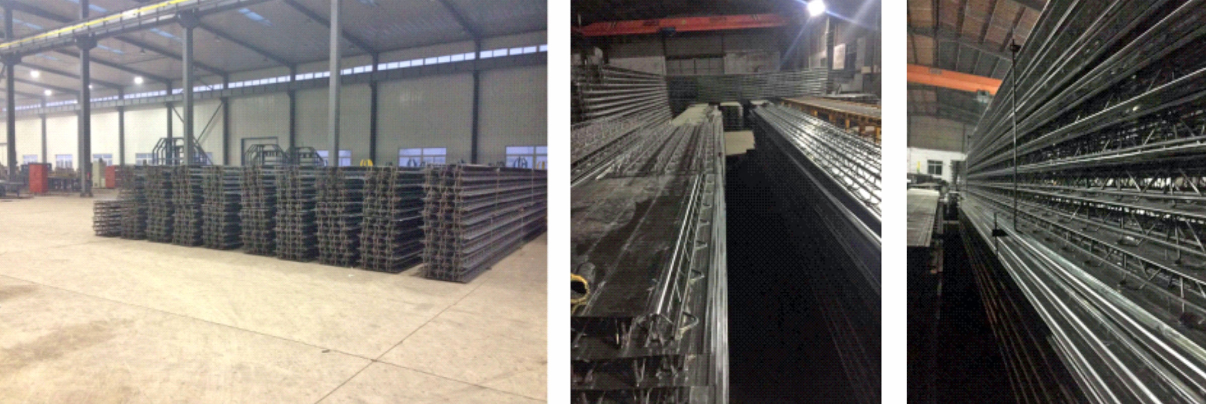 (2)生產運輸靈活方便 中益/泰博可拆底模鋼筋桁架樓承板:①公司生產,發貨現場安裝; ②只需底板,鋼筋桁架,扣件發往工地現場,由中益/泰博公司自主研發設備可進行現場裝配可拆底模鋼筋桁架樓承板,并且樓承板的裝配可根據現場實際施工區域進行組裝。
