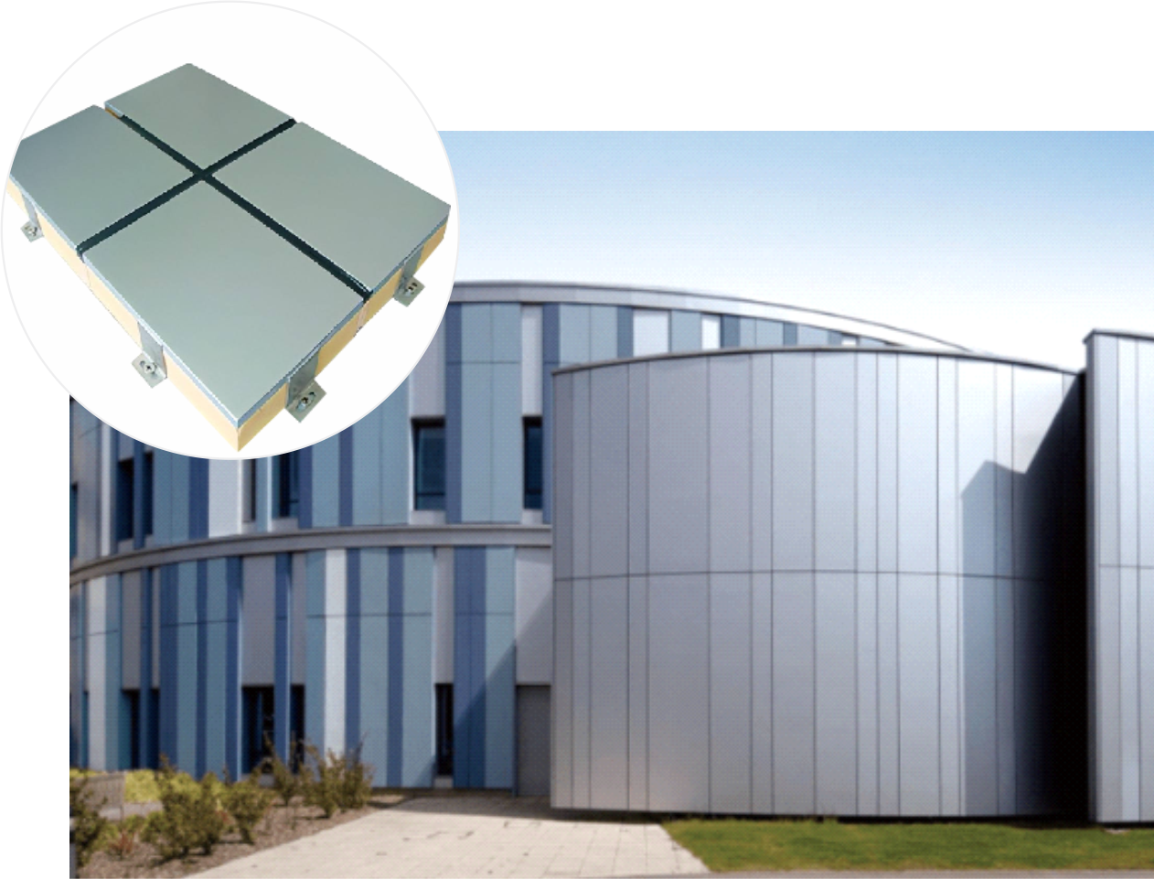 | 支架是幕墻承重的結構組成部分,一般有鋼制和鋁合金制兩種,支架的品質直接影響到鋁板幕墻的整體質量和安全性。 | 鋁板幕墻一般采用鋁合金板和彩鋼板作為面板材料,另外也有玻璃、石材等面板材料。面板的種類直接影響到鋁板幕墻的外觀和色彩。 |